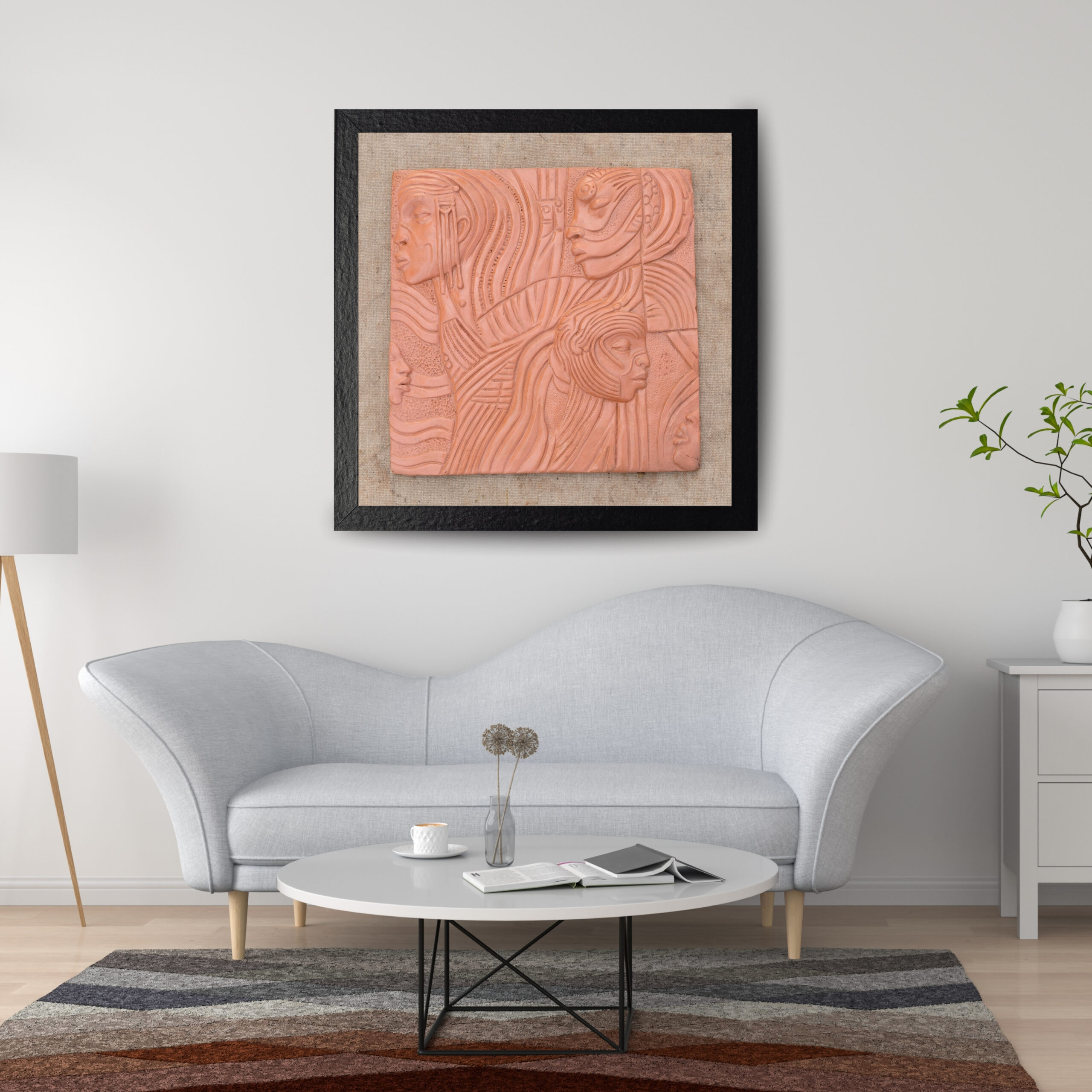 handcrafted terracotta abstract faces wall art. This stunning